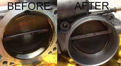 Without your realizing it, the response and performance that made your new car so much fun has slowly drained away. Deposits that build up in the fuel and air induction systems of the engine have robbed your car of its agility and excitement. Modern engines are finely tuned and extremely sensitive to deposits that accumulate on intake valves, intake ports, fuel injectors and combustion chambers. These deposits can also cause drivability problems such as hesitation, surge, stall, hard starting, rough idle and loss of power. These deposits will interrupt proper fuel atomization. This leads to increased exhaust emissions and drivability problems such as hesitation, surging, misfire and loss of power. The air throttle body assembly controls the air flow into the intake ports where the air mixes with atomized fuel and swirls into the combustion chamber. Heavy deposits build-up on the back side of the throttle plate, around and behind the plate and in the idle air control. โ